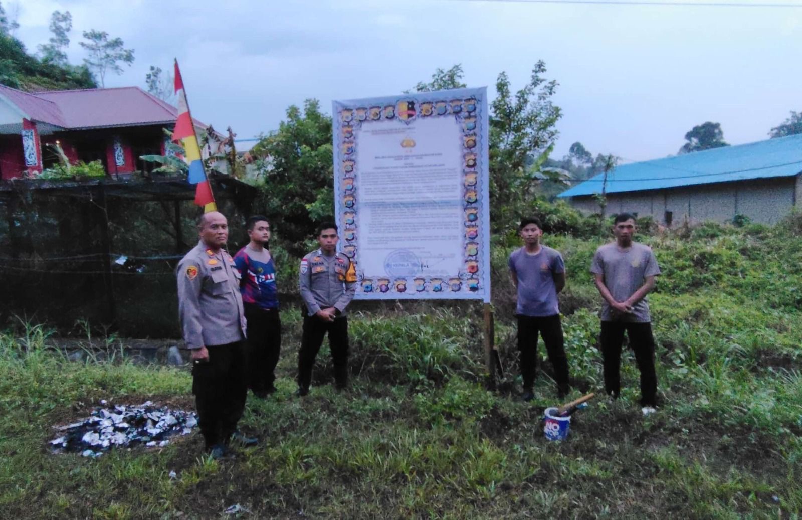 Sanggau, Polda Kalbar – Polsek Entikong gencar melakukan upaya pencegahan kebakaran hutan dan lahan (Karhutla) dengan memasang banner himbauan di sejumlah titik strategis. Pemasangan ini sekaligus menyampaikan Maklumat Kapolda Kalimantan Barat tentang larangan dan sanksi hukum bagi pelaku pembakaran hutan dan lahan.