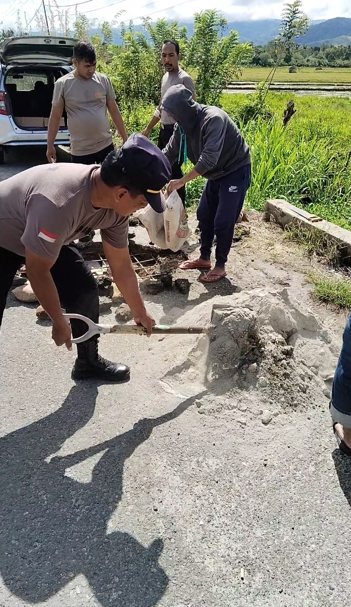 Kegiatan tersebut dipimpin langsung oleh Kapolsek Lore Selatan, Iptu I Made Putra Yasa, SH, bersama personel jajaran pada Selasa (07/04/2026). Perbaikan dilakukan di ruas jalan Trans Kecamatan Lore Selatan, Kabupaten Poso, yang selama ini diketahui sebagai jalur strategis namun rawan kecelakaan akibat kondisi jalan yang tidak rata dan dipenuhi lubang.