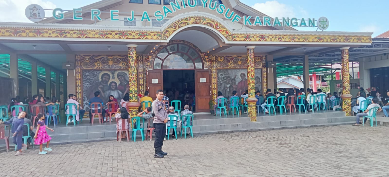 Kegiatan pengamanan ibadah misa di Gereja Santo Yusuf Karangan di lakukan oleh Bripka Hamdan bersama Bripka Orgen.