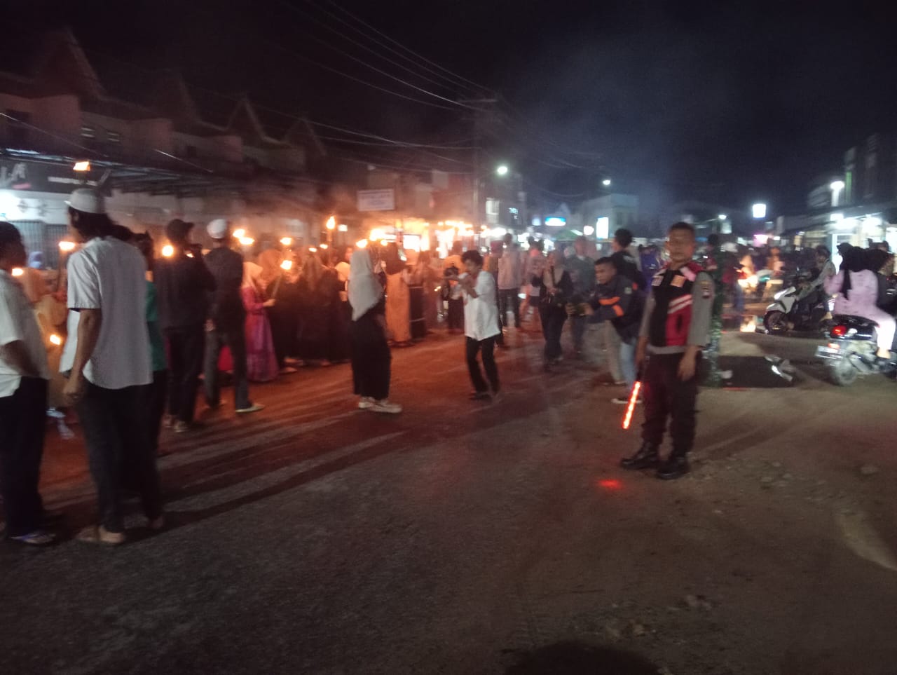 Dalam kegiatan pawai obor tersebut kita melibatkan setengah dari kekuatan personil Polsek Mempawah Hulu untuk melaksanakan pengamanan dan pengawalan kegiatan pawai obor agar berjalan sukses dan memberikan semangat positif bagi masyarakat. terang Kapolsek