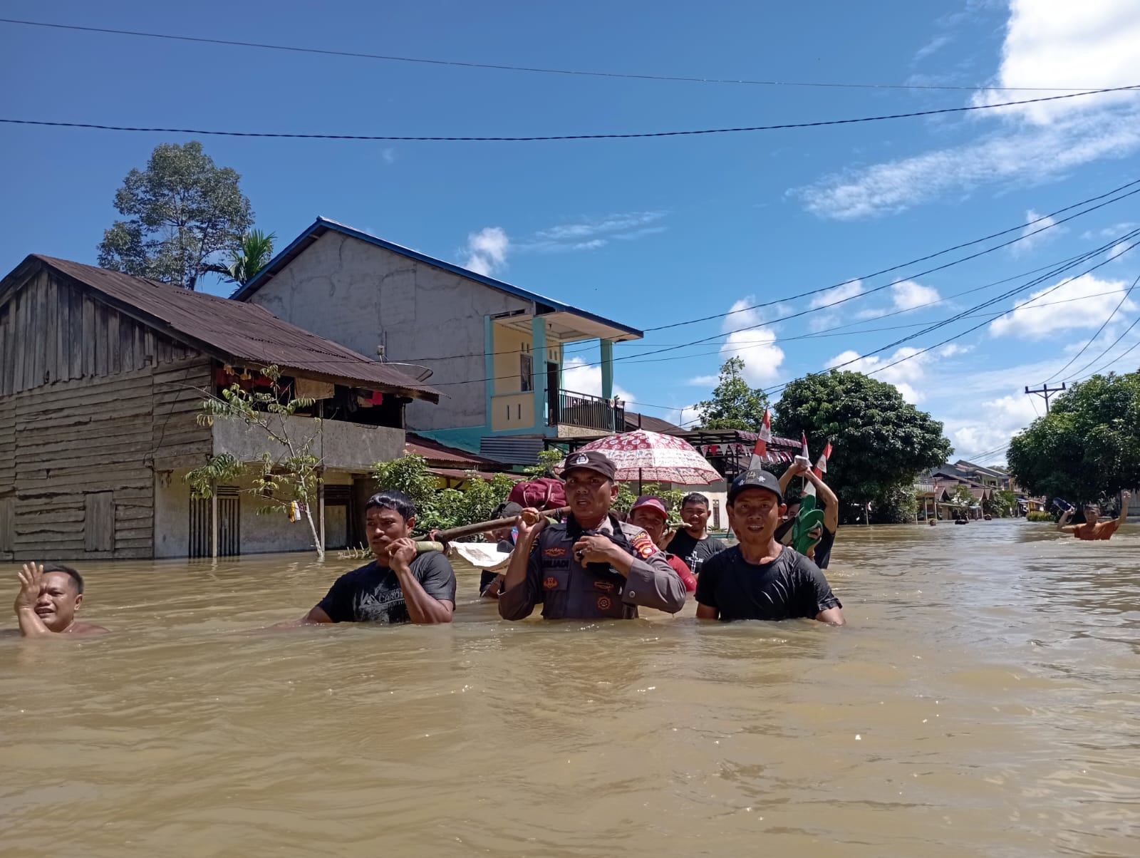 POLRES LANDAK – MENYUKE, POLDA KALBAR, Kebanjiran Pada hari Jum’at tanggal 30 Agustus 2024 sekitar pukul 10.00 wib Anggota Polsek Menyuke Aipda Ewaldus Leo dan Aipda Yusliadi Melakukan evakuasi warga yang sedang sakit dari Desa Ansang menuju Puskesmas Darit di Dusun Sri Lima Desa Darit Kecamatan Menyuke Kabupaten Landak.