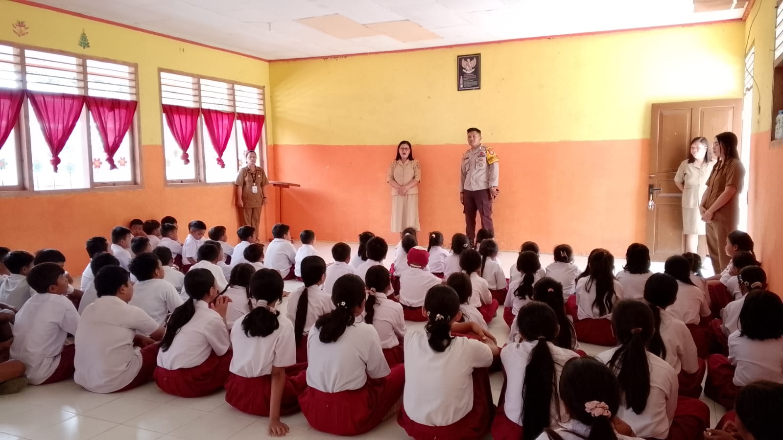 “Adik-adik harus paham, teman adalah sahabat. Mengganggu, mengejek, atau memukul teman itu tidak boleh. Jika melihat ada teman yang dibully, segera lapor kepada Bapak/Ibu Guru atau Polisi,” ujar Bripka Frangky di hadapan siswa yang mengikuti kegiatan dengan antusias.