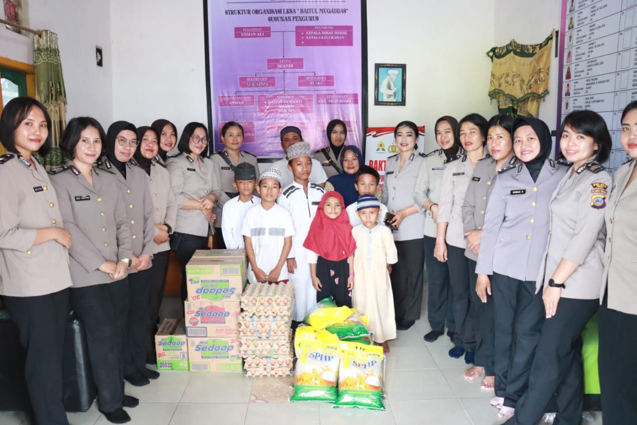 Tidak hanya itu, semangat kepedulian juga diwujudkan melalui aksi bakti sosial di salah satu panti asuhan di Parigi Moutong. Dalam giat tersebut, Polwan membagikan bantuan berupa sembako, kebutuhan harian, serta memberikan perhatian penuh kasih kepada anak-anak panti. Suasana penuh kehangatan tampak saat anak-anak menyambut dengan senyum bahagia.