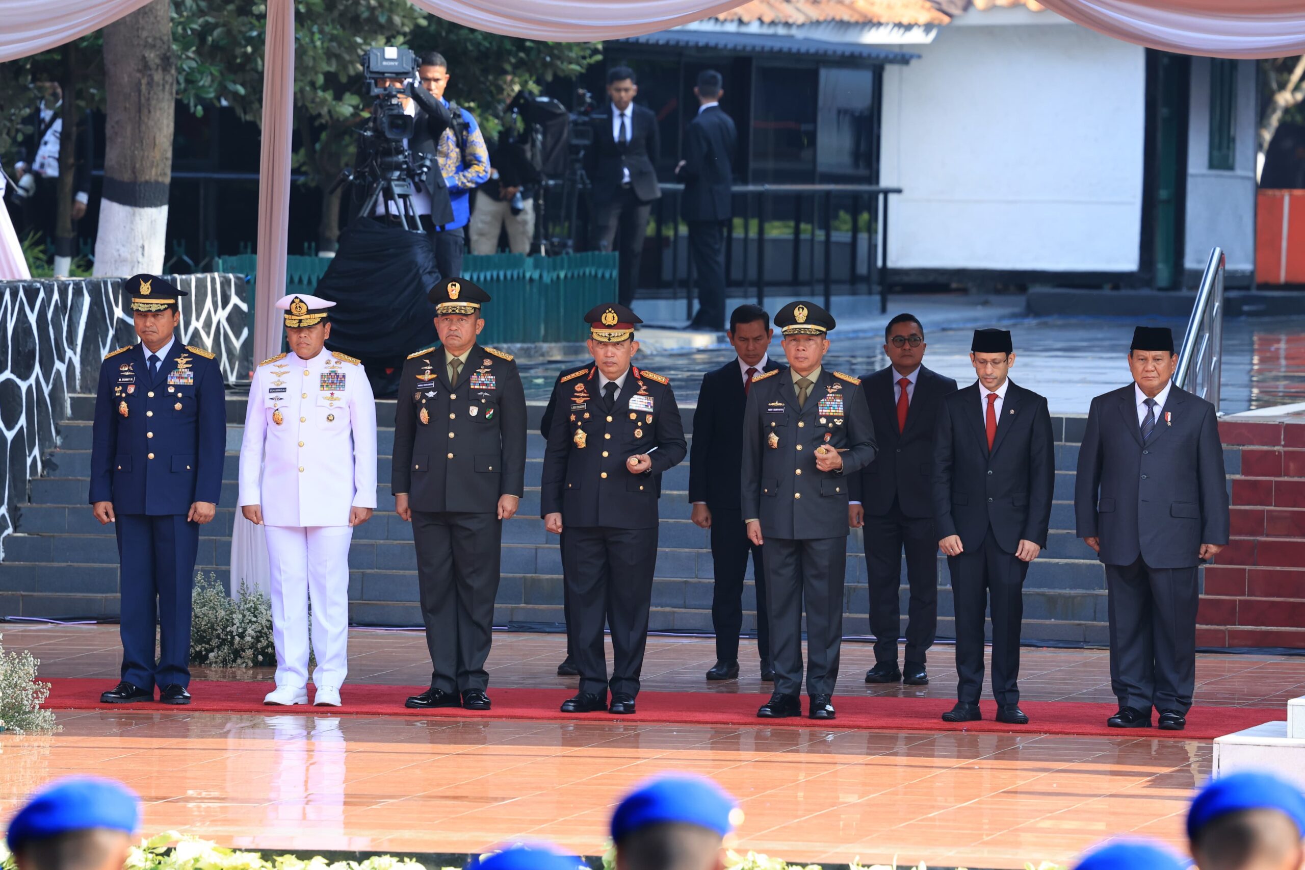 Presiden Jokowi yang juga memimpin upacara kali ini juga didampingi Menteri Pertahanan Prabowo Subianto, Mendikbudristekdikti Nadiem Anwar Makarim, dan Panglima TNI Jenderal Agus Subiyanto.