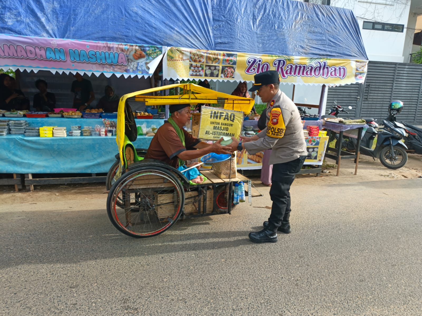 KETAPANG, Polda Kalbar – Kapolsek Delta Pawan Polres Ketapang Iptu Hendra bersama anggota membagikan takjil gratis kepada masyarakat dan tukang parkir yang berada di Jalan basuki rahmad dan Jalan Merdeka, Minggu sore (22/2). Kegiatan ini dilakukan sebagai bentuk kepedulian kepada masyarakat sekaligus mempererat hubungan antara kepolisian dan warga di bulan suci Ramadhan.