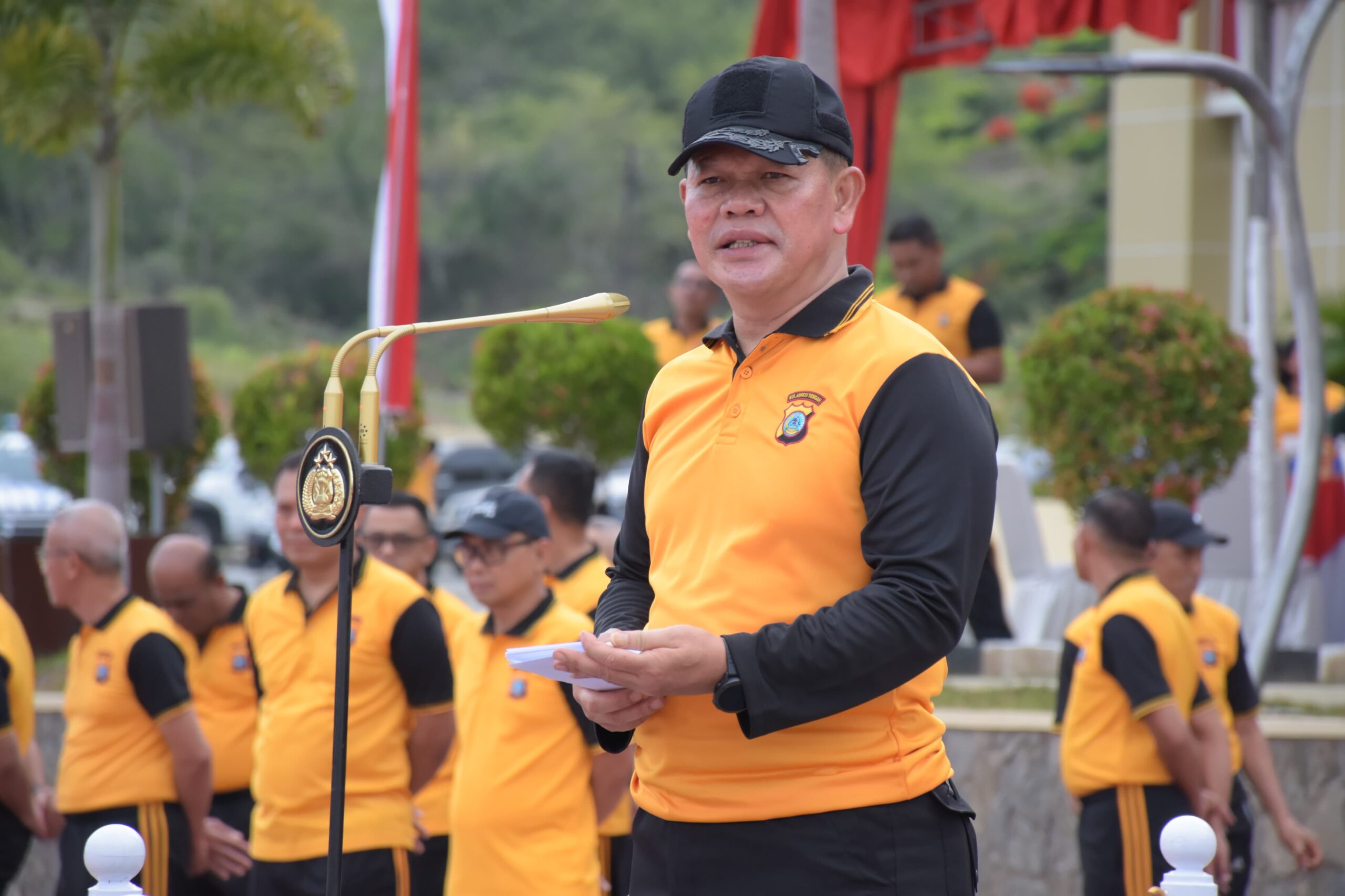 Palu – Kapolda Sulawesi Tengah, Irjen Pol. Dr. Agus Nugroho, membuka perlombaan Olahraga dan mengikuti Olahraga bersama dalam rangka Hari Bhayangkara ke-78 yang digelar di lapangan apel Mapolda Sulteng, Sabtu (22/6/2024).