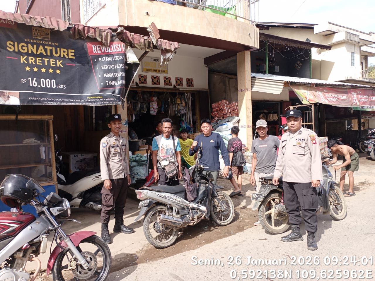 Kegiatan patroli siang yang di laksanakan oleh Kepala Sentral Pelayanan Kepolisian Terpadu Regu II Polsek Menyuke Aipda Eko Muslimin dan Anggota Aipda Heny Wintoko, Senin (26/01/2026).