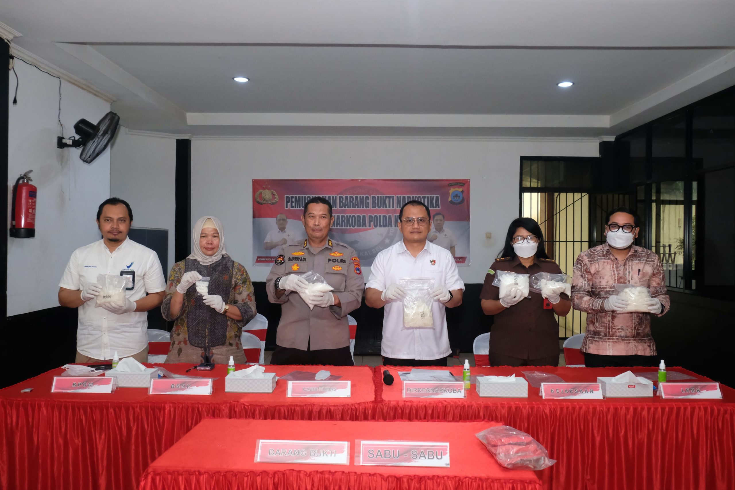 Pemusnahan barang bukti narkotika tersebut dipimpin langsung oleh Dir Resnarkoba Polda Kalsel Kombes Pol Baktiar Joko Mujiono, S.I.K., M.M. dihadiri KBO Ditresnarkoba Polda Kalsel, Kasubdit 1 Ditresnarkoba Polda Kalsel, Kasubbid PID Bid Humas Polda Kalsel, Kejati Kalsel, BNNP Kalsel, BPOM Kalsel, dan LKBH ULM.