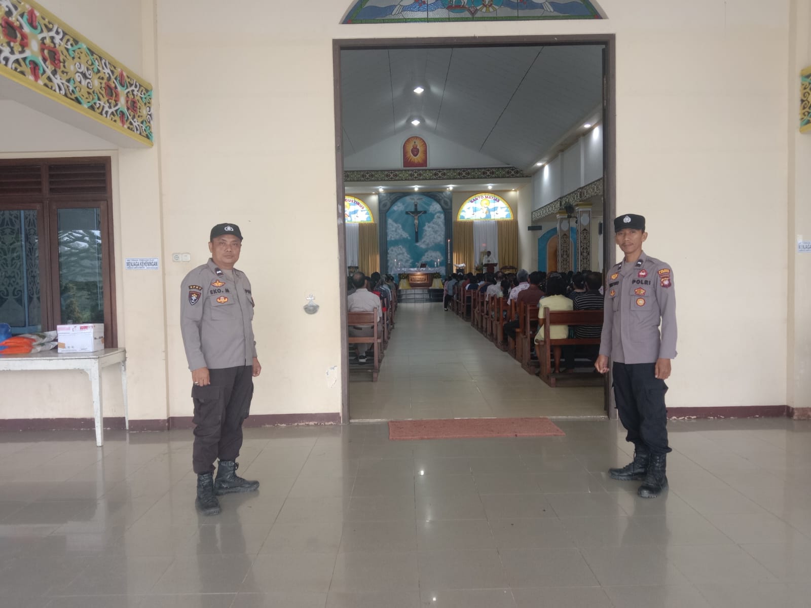 Kegiatan pengamanan ibadah misa tersebut yang di lakukan oleh Aipda Eko Muslimin dan Aipda Heny Wintoko, Minggu (26/04/2026) pagi.