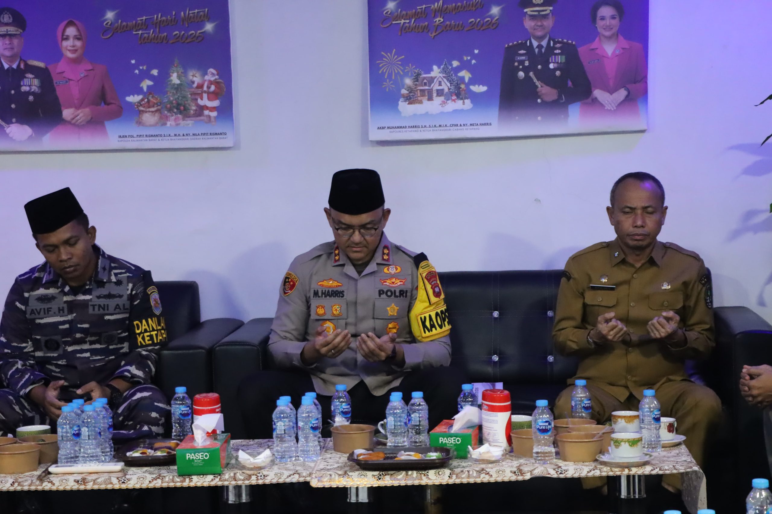 Kegiatan doa bersama tersebut dilaksanakan pada Rabu malam (31/12/2025) seusai pelaksanaan zoom meeting bersama mabes Polri di Pos Pelayanan Ale-Ale, dihadiri oleh unsur Forkopimda, serta perwakilan instansi pemerintah daerah. Suasana khidmat menyelimuti jalannya kegiatan, yang diisi dengan doa lintas agama untuk keselamatan bangsa dan pemulihan bagi daerah-daerah yang terdampak bencana.