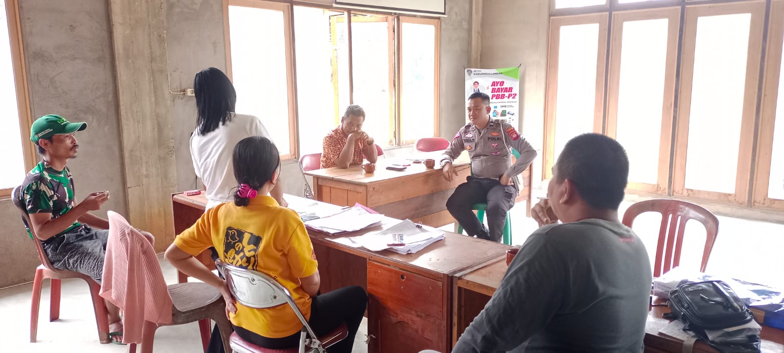 Kegiatan sambang ke kantor desa ini merupakan suatu langkah dari polri untuk lebih meningkatkan peran serta masyarakat dalam pemeliharaan Kamtibmas disekitar lingkungannya.ujar Kapolsek.