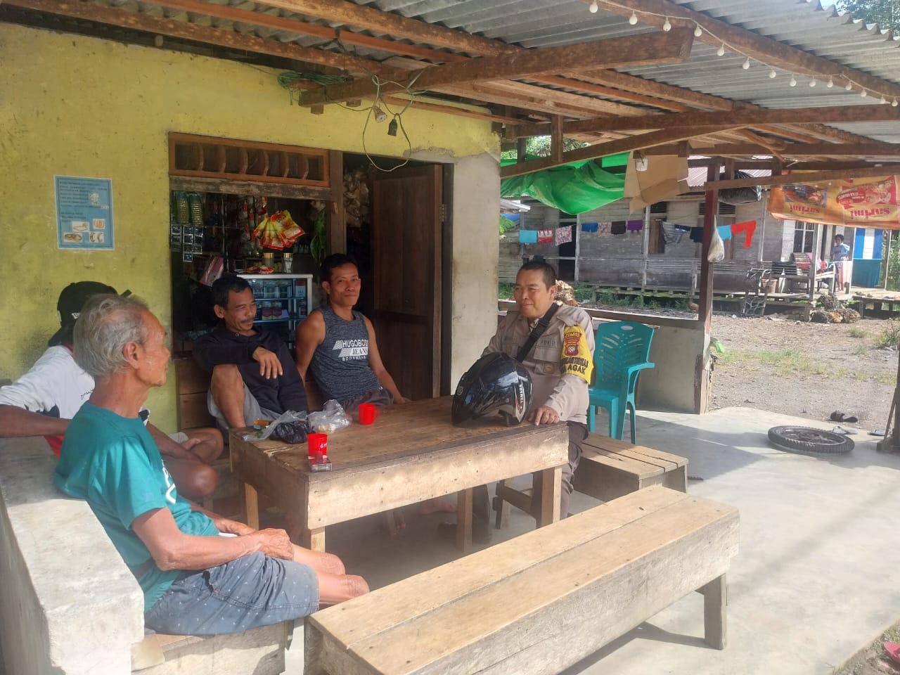 Polsek Sebangki~ Polres Landak ~ Polda Kalbar ~ suasana hangat terlihat jelas saat Bhabinkamtibmas Polsek Sebangki, Bripka Heryanto, menyambangi warga binaannya. Duduk bersama di teras sederhana milik warga, ia memberikan imbauan kamtibmas dengan cara yang penuh keakraban dan kekeluargaan, ” Selasa (9/12/2025)
