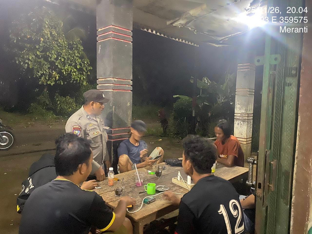 Polsek Meranti ~ Polres Landak ~ Polda Kalbar ~ Dalam upaya menciptakan situasi kamtibmas yang aman dan kondusif, jajaran Kepolisian terus meningkatkan kegiatan patroli dialogis dengan menyapa langsung masyarakat. Seperti yang terlihat pada Minggu malam (25/1/2026), personel Polsek Meranti melaksanakan patroli malam dan bertemu langsung dengan warga di lingkungan pemukiman.