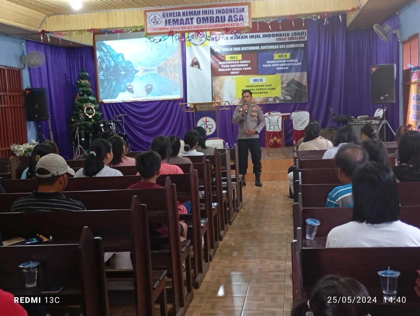 KUTAI BARAT — Sat Binmas Polres Kutai Barat mengadakan kegiatan sosialisasi yang bertujuan untuk menumbuhkan minat para siswa menjadi anggota Polri. Acara ini berlangsung di Greja Kemah Injil Kampung Ombau Asa, Kecamatan Barong Tongkok, Kabupaten Kutai Barat, pada hari Sabtu, 25 Mei 2024 pukul 14.30 Wita hingga selesai. Kegiatan ini dipandu oleh Aiptu Jamil Akhmad sebagai pemberi materi dan didokumentasikan oleh Bripda Ahmad Fauzi.