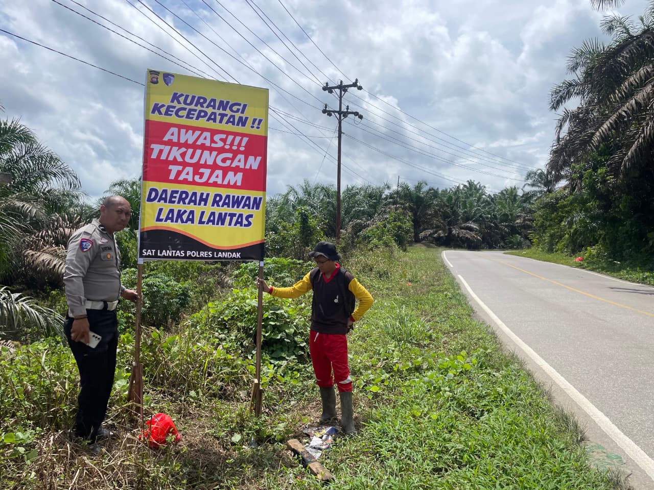 Polres Landak ~ Polda Kalbar ~Sie Humas~ Untuk mencegah terjadinya kecelakaan lalu lintas, Satuan Lalu Lintas (Satlantas) Polres Landak memasang sejumlah banner peringatan di beberapa titik strategis yang dikenal sebagai daerah rawan kecelakaan, Selasa (9/12/2025). Pemasangan dilakukan di jalur yang kerap dilalui kendaraan bermuatan berat dan memiliki tikungan tajam.
