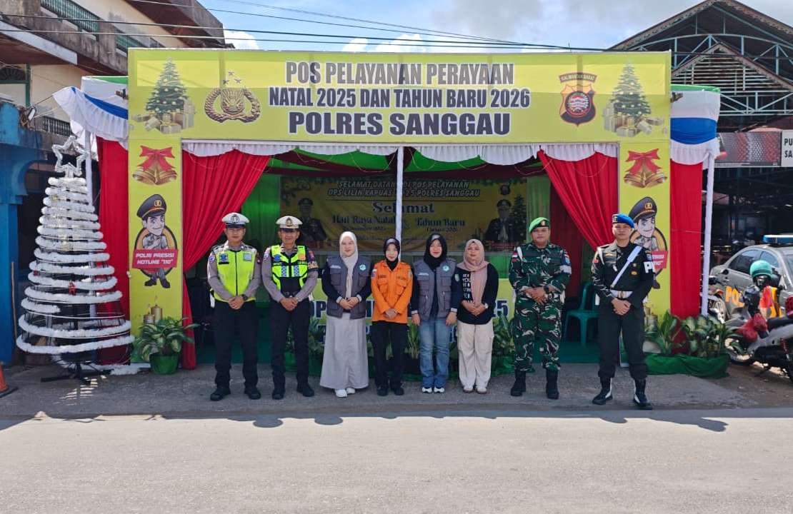 Sanggau, Polda Kalbar – Polres Sanggau terus memastikan keamanan dan kenyamanan masyarakat selama perayaan Natal 2025 dan Tahun Baru 2026 melalui kegiatan Piket Pos Pelayanan Nataru yang digelar secara terpadu. Kegiatan tersebut berlangsung sejak Sabtu, 27 Desember 2025 pukul 08.00 WIB hingga Minggu, 28 Desember 2025 pukul 08.00 WIB, bertempat di Pos Pelayanan Nataru Pujasera, Jalan A. Yani, Kelurahan Ilir Kota, Kecamatan Kapuas, Kabupaten Sanggau.