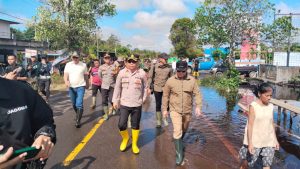 Forkopimda Kabupaten Kubu Raya bersama kepolisian Polres Kubu Raya turun langsung meninjau lokasi banjir di sepanjang Jalan Trans Kalimantan, tepatnya di Kilometer 30-40, Desa Pancaroba dan Desa Teluk Bakung, Kecamatan Sungai Ambawang, Kabupaten Kubu Raya, Minggu, (9/3) pagi. Dalam kunjungan tersebut, Bupati, H. Sujiwo, S.E.,M.Sos, Wakil Bupati Kubu Raya, H. Sukiryanto, S.Ag, bersama Wakapolres Kubu Raya Kompol Hilman Malaini, S.H.,S.I.K, serta unsur Forkopimda lainnya menyalurkan bantuan paket sembako bagi warga terdampak banjir.