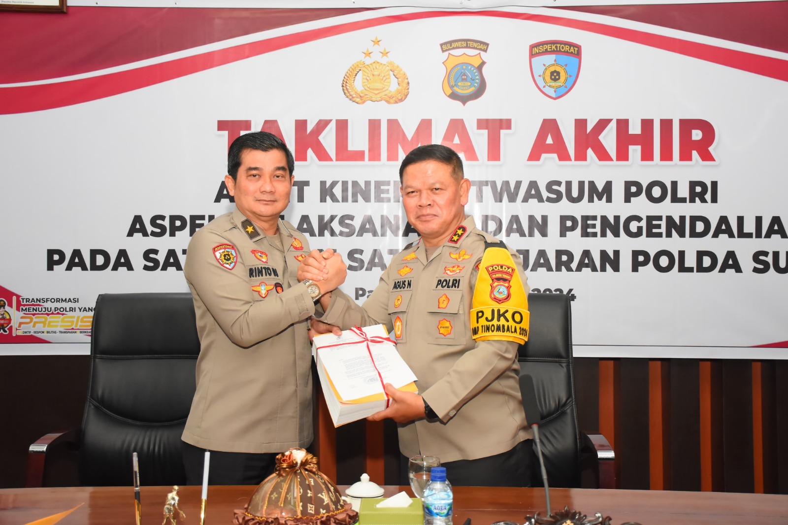 Taklimat Akhir Audit Kinerja Itwasum Polri Tahap II, Kapolda Sulteng: Evaluasi dan Masukan untuk Terus Bekerja Sesuai Aturan
