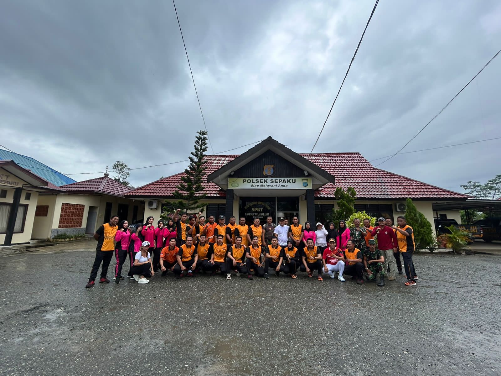PENAJAM — Personel Polsek Sepaku berbaur dalam kegembiraan di acara olahraga berasma di di Halaman Polsek Sepaku. Kegiatan ini semakin seru karena melibatkan personel TNI dan Bhayangkari, Jumat (27/9/2024).