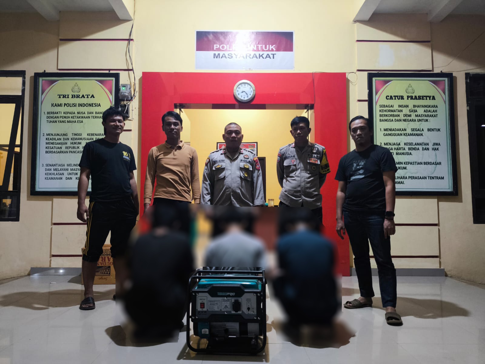 “Benar, Polsek Petasia telah berhasil mengungkap dan menangkap tiga orang terduga pelaku pencurian genset yang terjadi di Mesjid DPRD Kabupaten Morowali Utara, ketiga pelaku telah diamankan di Polsek Petasia dan ketiga pelaku masih dibawah umur, untuk prosesnya masih dalam pemeriksaan Unit Reskrim Polsek Petasia dan berkoordinasi dengan Unit PPA Satreskrim Polres Morowali Utara.” Terang Kapolres.