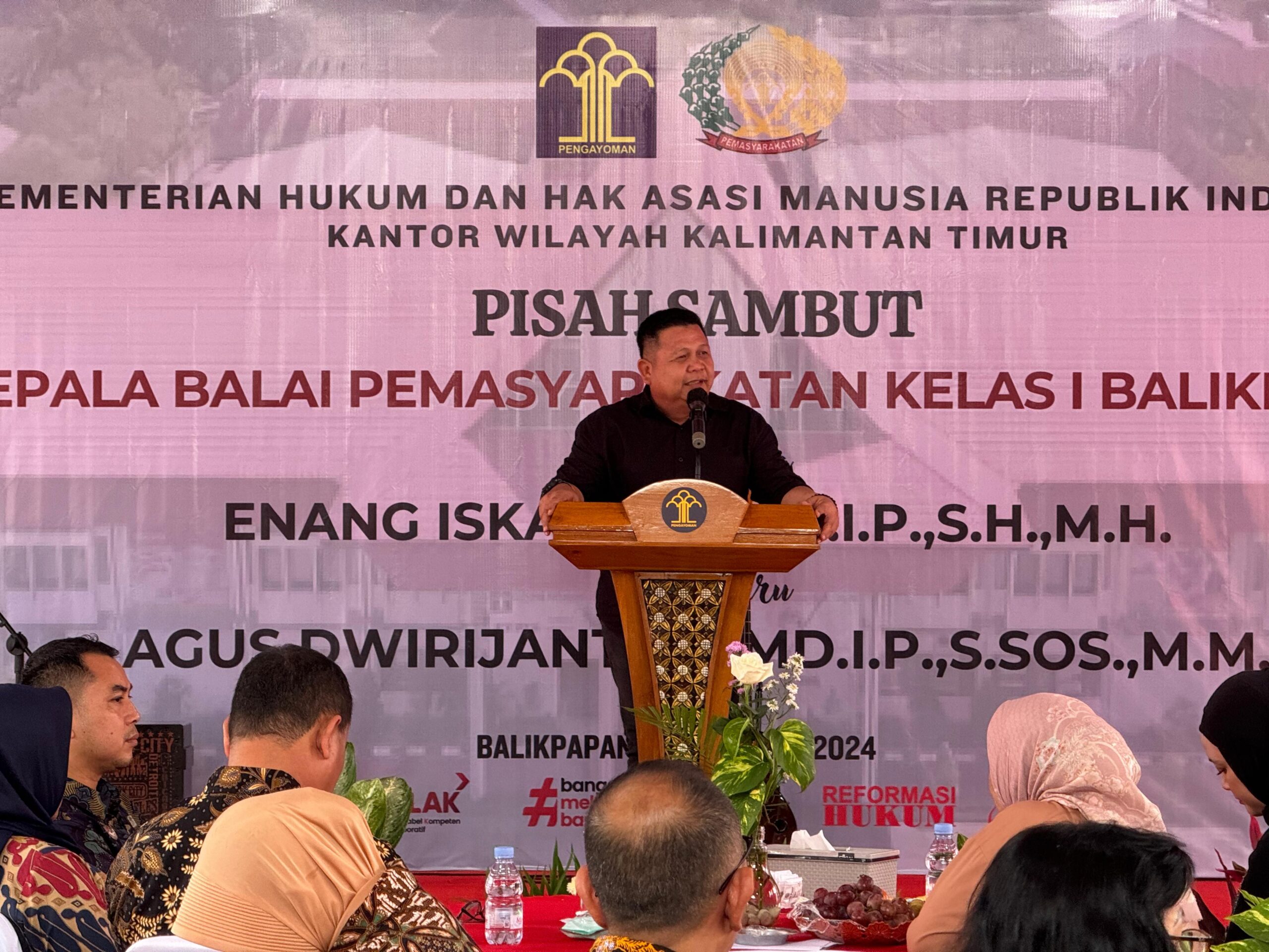BALIKPAPAN — Wakil Direktur Tahanan dan Barang Bukti (Wadir Tahti) Kompol Hari Widodo,S.H., menghadiri acara pisah sambut Kepala Balai Pemasyarakatan Kelas I Balikpapan dari pejabat lam, Enang Iskandi, A.Md., IP., S.H., M.H., kepada pejabat baru Agus Dwiriyanto, A.Md., IP, S.Sos, M.M., bertempat di Balai Pemasyarakatan Kelas I Balikpapan,  (Jumat 30/08/24).