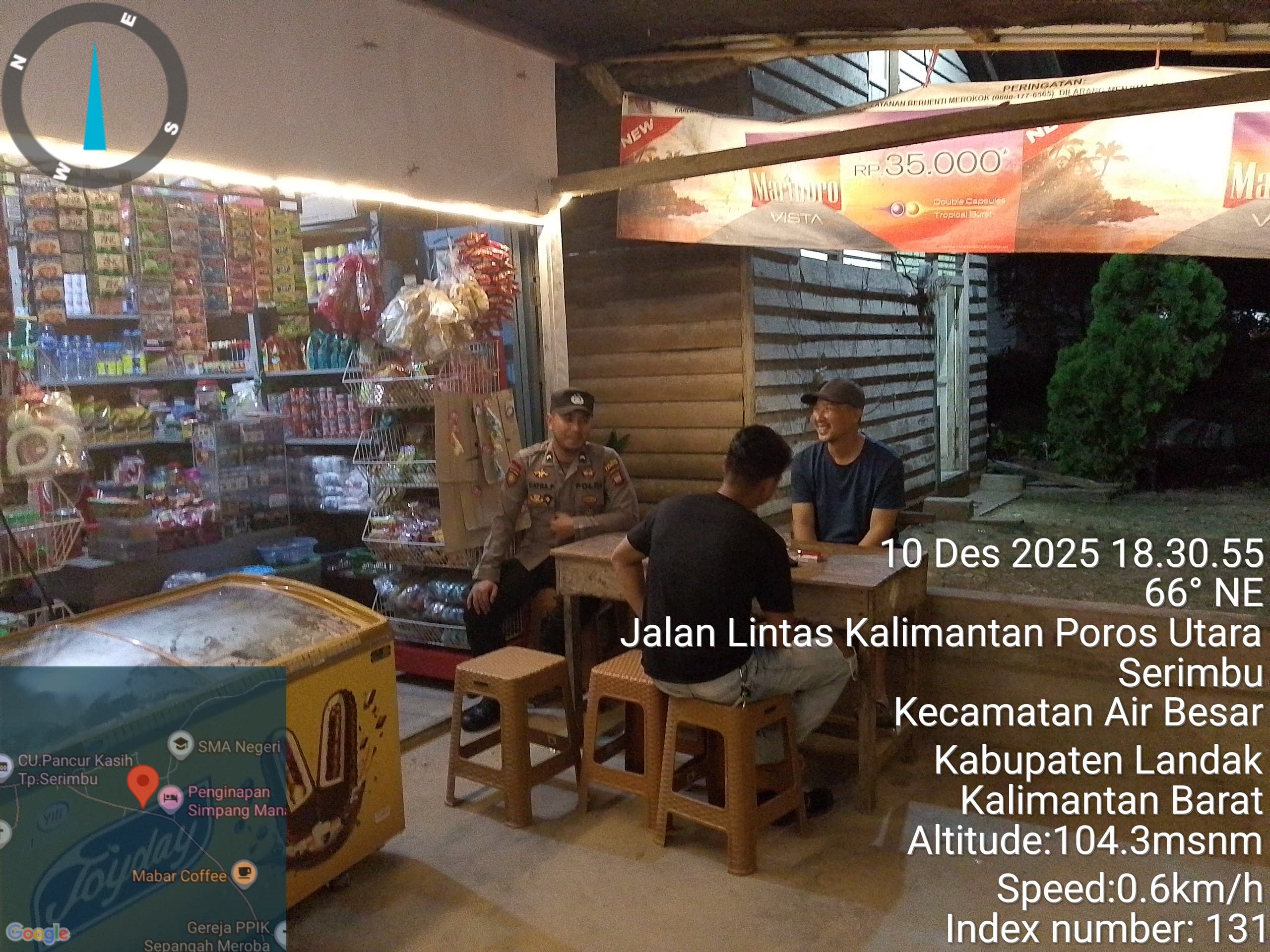 Polsek Air Besar ~ Polres Landak ~ Polda Kalbar ~ Rabu malam (10/12/2025), jajaran Polsek Air Besar melaksanakan patroli rutin sekaligus menyambangi warga untuk memberikan himbauan menjaga keamanan dan ketertiban masyarakat. Kegiatan patroli ini dilakukan sebagai upaya kepolisian untuk memastikan situasi tetap kondusif serta menekan potensi gangguan kamtibmas pada malam hari.