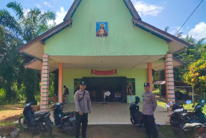 Polsek Kuala Behe – Polres Landak, Kegiatan Personil Polsek Kuala Behe Minggu pagi laksanakan kegiatan rutin yaitu pengamanan tempat peribadatan di gereja GKSI Imanuel dan di GPPIK Getsemany Kuala Behe, Minggu (14/09/2025).